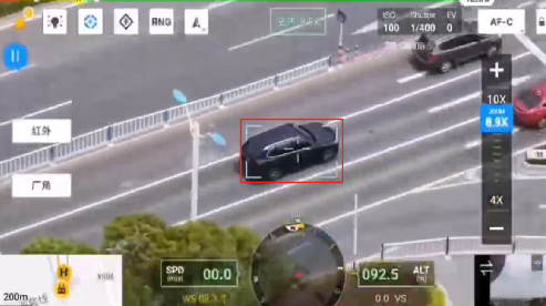 无人机采集到的交通路况视频进行实时分析,对违法车辆牌号进行跟踪识别,对交通违法情况自动进行记录。