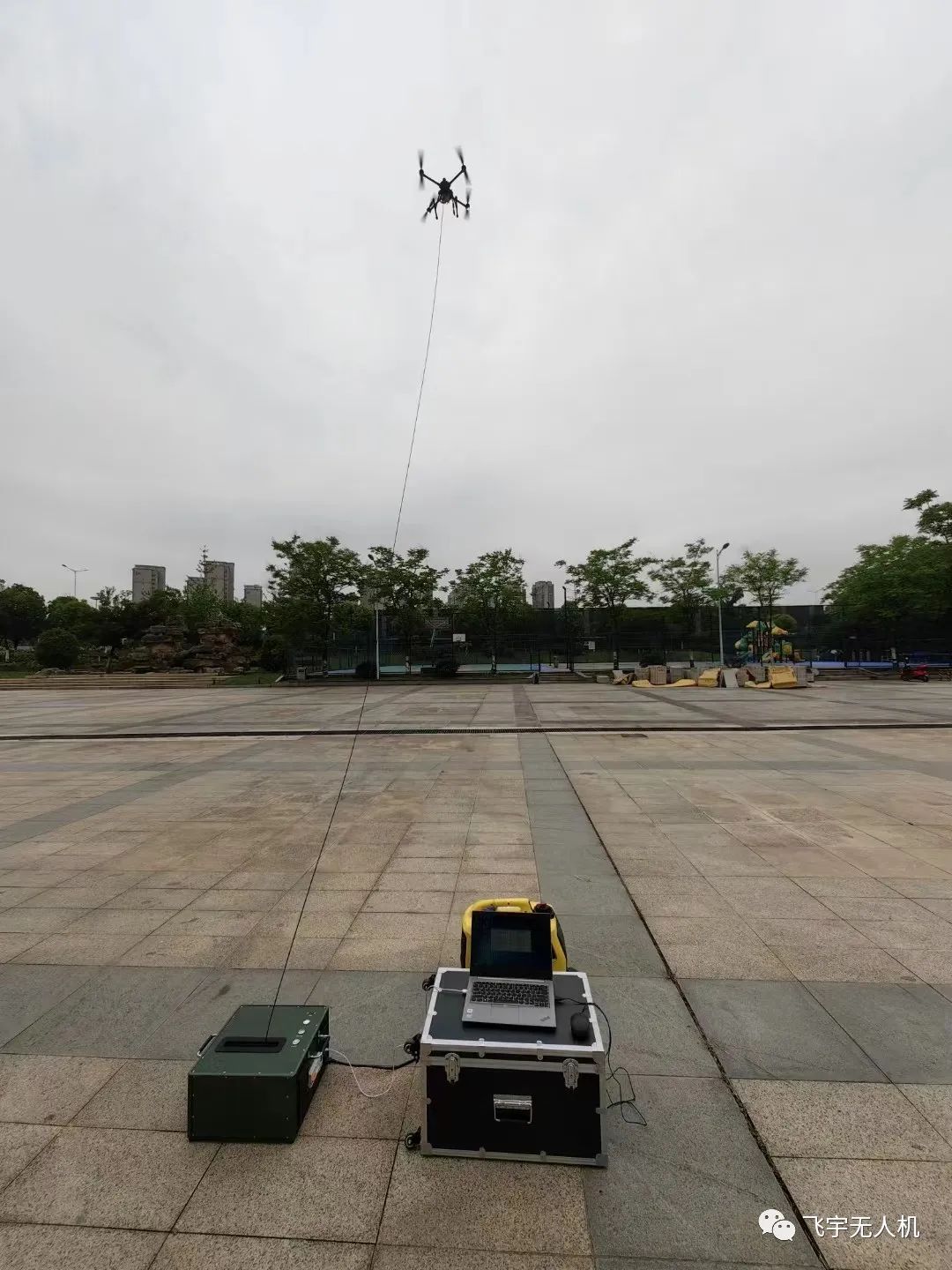 FYXL-XP01无人机系留系统可适配多无人机平台,包括DJIM200/M210、悟2和M300无人机,以及支持6S或12S供电的功率在2500W以内的无人机,只需更换使用适配不同无人机的机载端模块即可。该系统由机载端模块和地面系留电源箱组成。通过高性能合金线缆将电能从地面传输到机载端模块,转化为无人机所使用直流12S/6S电压,可持续为无人机供电。可直接接入发电机或220V市电,在安全基础上让无人机做到超长航时留空作业。同时机载端模块提供48V/24V电源接口(自动在电池和电源供电间切换),可供其他机载吊舱使用,如挂载照明灯实现夜间应急照明、挂载中继恢复通信或延长通信距离、挂载吊舱实现长时间监控等。