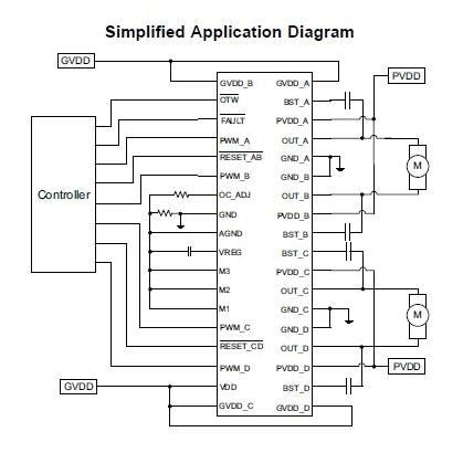 该系列的成员为每个半桥提供独立的电源和接地引脚,可通过外部分流电阻器进行电流测量,并支持使用具有不同电源电压的多个电机。当两个电机的尺寸不同从而需要不同的电源电压时,这很有用,例如在广告显示器中,使用非常小的电机在显示器上挥动吸引注意力的旗帜,而使用较大的电机旋转整个显示器。