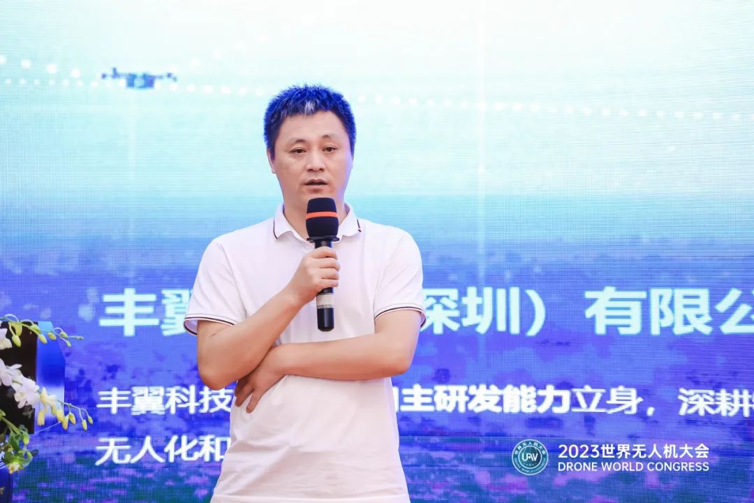 ▲丰翼科技产品负责人张德虎介绍丰舟90无人机新品
