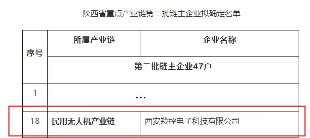2023年6月6日,陕西省工业和信息化厅公布了陕西省重点产业链第二批链主企业拟确定名单,羚控科技当选“民用无人机产业链”链主企业。