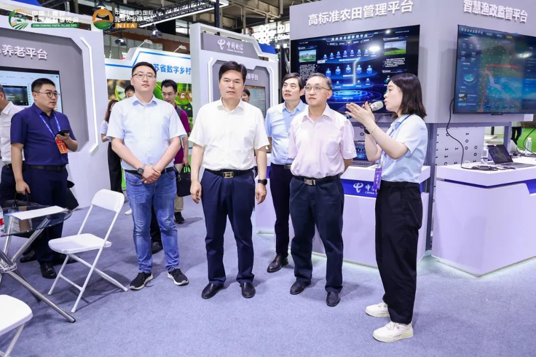 展会第二天(也就是今天~),农业农村部信息中心主任王小兵,省委宣传部副部长、省委网信办主任杨力群,省农业农村厅厅长季辉等领导莅临2023数字乡村暨智慧农业博览会,巡视展会现场。在参观过江苏省数字乡村建设成果展后,几位领导一路又参观了多家展台,近距离了解企业在数字乡村与智慧农业建设中的先进技术、设备、解决方案,与参展企业亲切互动交流。