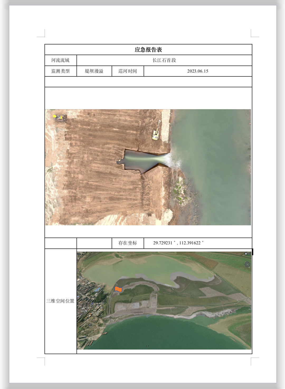 平台还兼具灾情自动预警的功能,可对传回的图片、视频进行分析,识别图中的漫溢、管涌、渗漏等堤坝险情,生成险情和灾情信息报告,并将数据信息在应急指挥“一张图”上进行叠加、标绘,形成灾区新的总体态势,提供辅助决策支撑。