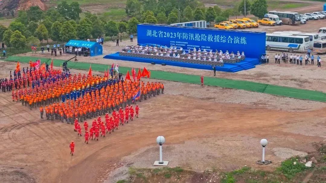 为贯彻落实习近平总书记防灾减灾救灾重要论述精神,全面做好防大汛、抗大洪、抢大险、救大灾准备工作,2023年6月20日上午,由湖北省防汛抗旱指挥部主办,湖北省应急管理厅、荆州市防汛抗旱指挥部、石首市人民政府具体承办,湖北省军区、武警湖北省总队、省消防救援总队、中国安能武汉救援基地协办的2023年湖北省防汛抢险救援综合演练在湖北省荆州市石首市笔架湾举行。