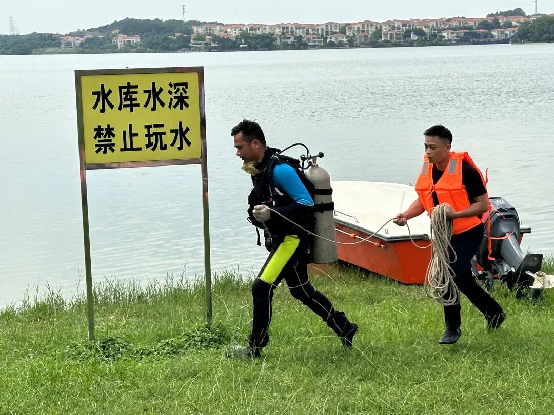 6月26日15时,佛山市南海区丹灶镇应急抢险队伍水上救援战备演练开始,模拟场景为丹灶镇狮山窦出现水位预警,水位为6.1米,超过预警水位。