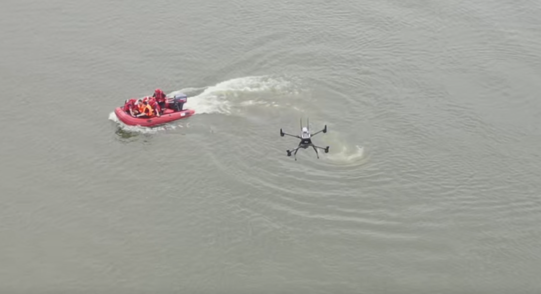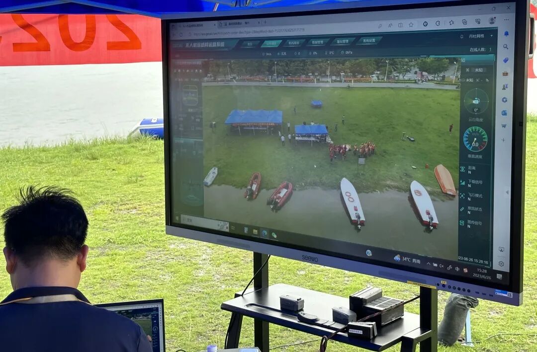 演练全程无人机空中监控,为镇应急指挥中心指挥调度开展一系列水上救援工作提供协助。