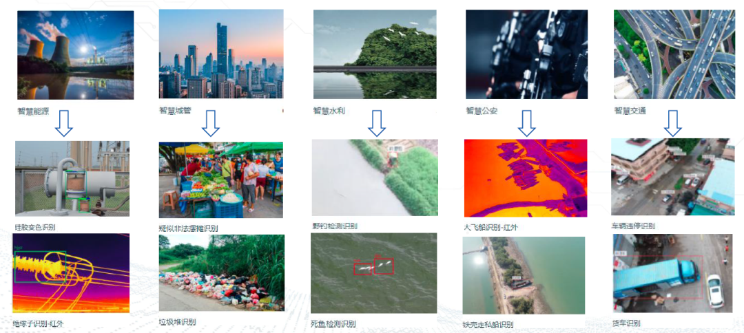 基于不同的应用场景,中科云图研发出100+的GEOAI算法,面向能源、城镇网格化管理、水务、交通、环保、公安、城管、应急等多个行业场景化业务,为各行业提供越来越强大的空间智能,提供更便捷高效的解决方案。