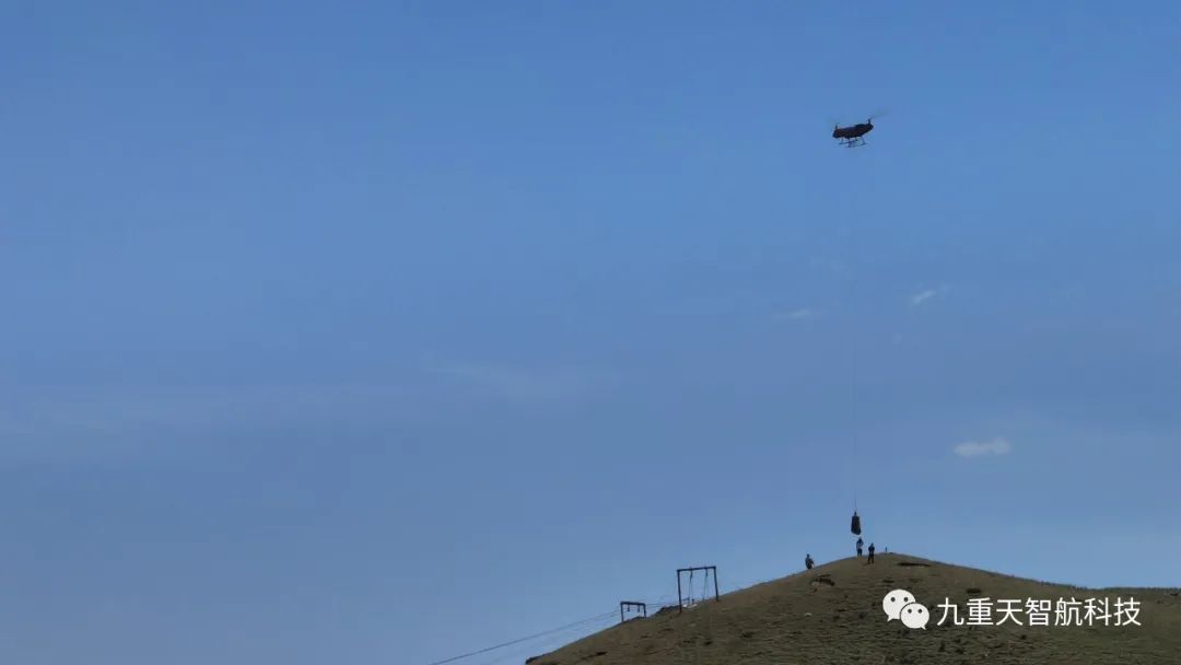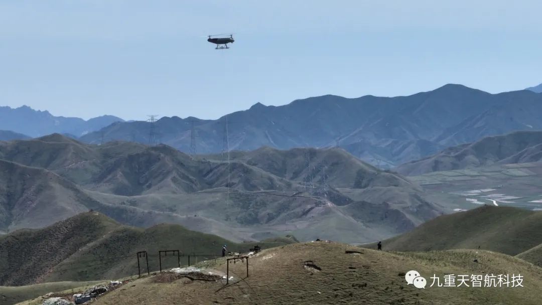 2023年6月,广西九重天智航科技服务有限公司在高海拔地区(甘肃省天祝县)使用驼峰600大载重无人直升机顺利完成了电塔基建项目中的基础材料运输项目。本次吊装创新技术的成功运用,大大提高了工作效率,同时也缩短了运输周期,大幅减少了架设索道的工作量。这项创新技术应用了航空特种物流科技手段,使得整个运输过程不会破坏地表植被,保护了生态环境,全程顺利地完成了电塔基建的各环节任务。此次飞行成果得到了国家电网公司和当地环保部门广泛的认可和赞誉,是国内又一项领先的创新科技成果。