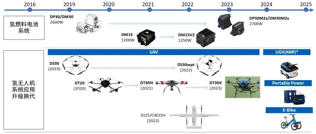 作为专业的无人机用氢燃料电池系统公司,自2016年开始,斗山通过在多种飞行器的应用经验,不断更新产品的技术迭代,确保氢燃料电池产品可以在多变的空中环境和复杂的气象条件下稳定运行。斗山从2018年开始与深圳科卫泰,成都纵横等无人机企业合作,开发氢无人机并持续的进行改善和产品迭代。