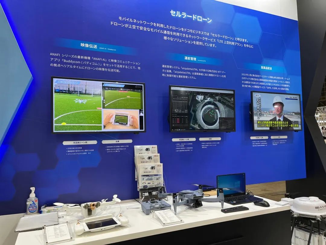 在蜂窝无人机展区,该公司介绍了一个使用LTE上层空域使用计划的解决方案,该计划允许在4级飞行所需的空域使用移动通信。 具体而言,介绍了使用ANAFI Ai的视频传输和与NTT Data合作的airpaletteUTM运营管理系统。 在物流领域,在和歌山县进行了在灾难和正常情况下使用无人机运送药品的演示,并介绍了从运送源头到医院的1.5公里路线上的自动飞行实例。 他们不仅对运输,而且对接收过程进行了全面演示,包括运输过程中的温度控制和接收时使用AI人脸识别服务SAFR的收件人认证。