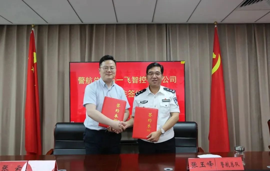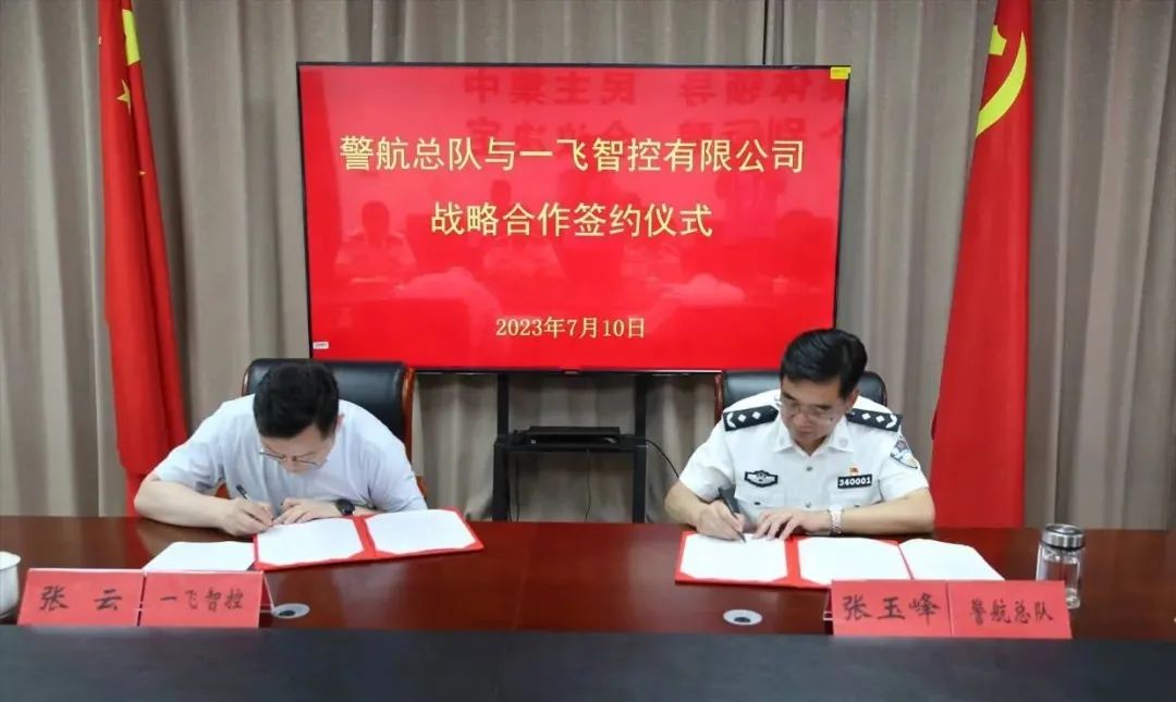 2023年7月10日,天津市公安局警务航空总队(以下简称“警航总队”)与一飞智控签署战略合作协议。警航总队总队长张玉峰、一飞智控总经理张云出席签约仪式并代表双方签约。