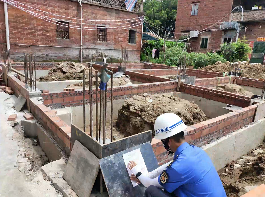 违建线索也同步上传至APP,流转至职能部门。12点17分,执法人员现场核查问题,发布责停通知书。