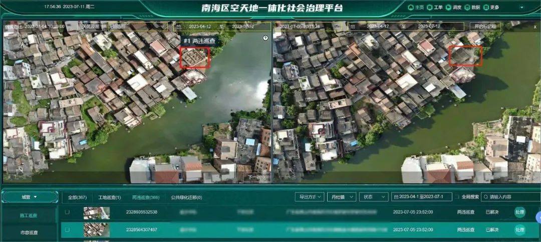 7月6日10时,无人机再次复核,违建问题处理完成,反馈到平台,完结工单。