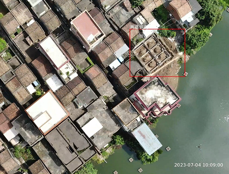 丹灶执法办要求对某社区两违情况进行无人机巡查,查看是否存在违法行为。