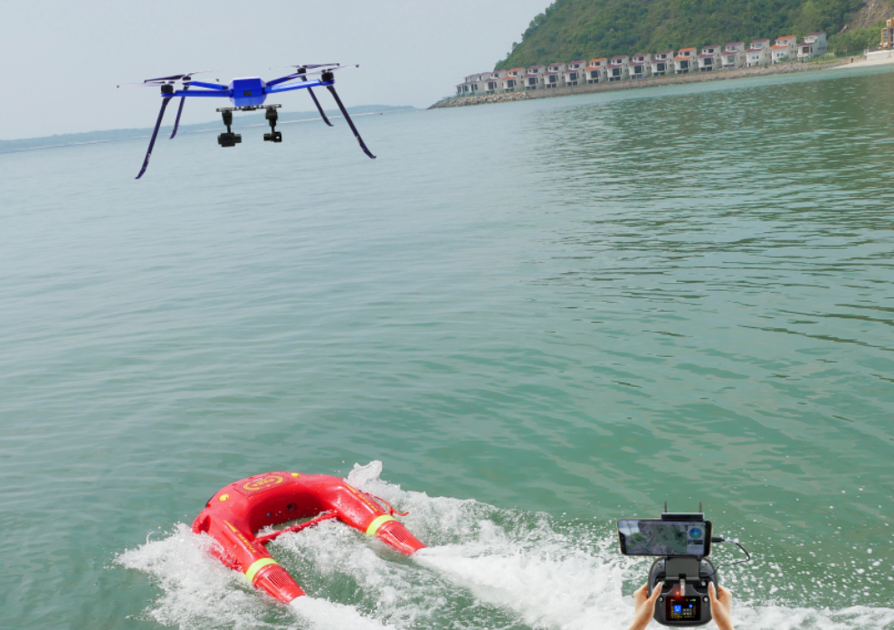 智璟科技空海一体化无人 救援系统引领行业革新 —— Air-sea Collaboration Rescue System —— 在当今世界,灾害和紧急情况时有发生,救援行业面临巨大挑战。然而,智璟科技带来了一项突破性的解决方案——空海一体化无人救援系统,它利用无人机与水上救援机器人的协同作战,能实现空中水面联动协作智能化解决方案,它能有效应用在各种水域,比如大海、湖泊、水库、江河等,也能实现快速到达救援点,提升救援效率的目的。 产品介绍 Products 空海一体:巡逻 无人机 空海水域救援系统的核心是无人机。无人机配备先进的定位技术和高分辨率摄像头,能够快速准确地锁定落水人员的位置。当接到求救信号或发现落水情况时,无人机能够迅速起飞,并通过图像处理和人工智能算法精确定位落水人员的准确坐标。这项技术不仅节省了宝贵的时间,也大大提高了救援的成功率。 空海一体 水上救援机器人 一旦无人机确定了落水人员的位置,水上救援机器人跟随无人机前往救援。水上救援机器人是专门设计用于水域救援的机器人,具备良好的稳定性和操控能力。它们可以快速航行到事发地点,并迅速展开救援行动。水上救援机器人可配备有救援绳和医疗急救装备,可以提供及时有效的救援支持。 多重优势 Multiple Advantages 系统组成 1 实时图传,可视化救援; 2 空海⼀体化联动,⽔上机器⼈可⾃动跟随⽆⼈机到达落⽔点; 3 ⽆⼈机通过空中视⻆观看整体状况以及精准定位,使得营救可视范围扩⼤数⼗倍以上,可准确判断落⽔者状态及具体地理位置; 4 ⽆⼈机通过空中视⻆观看整体状况以及精准定位,使得营救可视范围扩⼤数⼗倍以上,可准确判断落⽔者状态及具体地理位置; 5 ⽆⼈救援系统,不管是巡逻查看险情,还是在救援实际应⽤中,都给营救带来更多灵活性与及时性,增加救援效率。 未来前景 Future Prospects 空海水域救援系统 空海水域救援系统以无人机和水上救援机器人的协同作战为基础,为落水人员提供了更快速、准确和高效的救援方式。这项技术的发展代表了人类对科技创新的不断探索和应用,将为海洋救援行动带来积极的变革。我们对未来空海水域救援系统的发展充满期待,并期望它能够在拯救生命的同时,为更多的人们带来安全与希望。