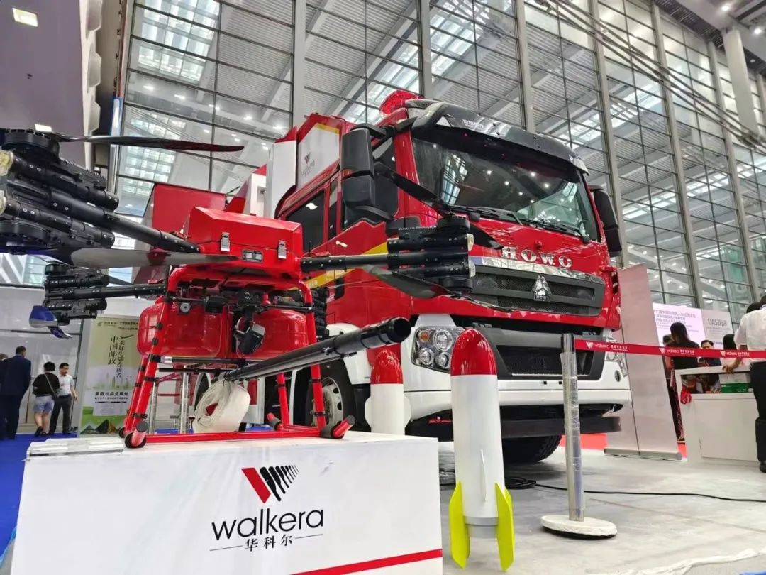 华科尔集“系留喷洒、地面扑救、智能巡检、应急供电、移动指挥”多功能于一身的机车联动高层灭火救援系统,搭载多台水带系留式消防灭火无人机,长时间不间断空中灭火,实现“消防车即作战站”,让“会飞的消防员”真正了具备实战能力。
