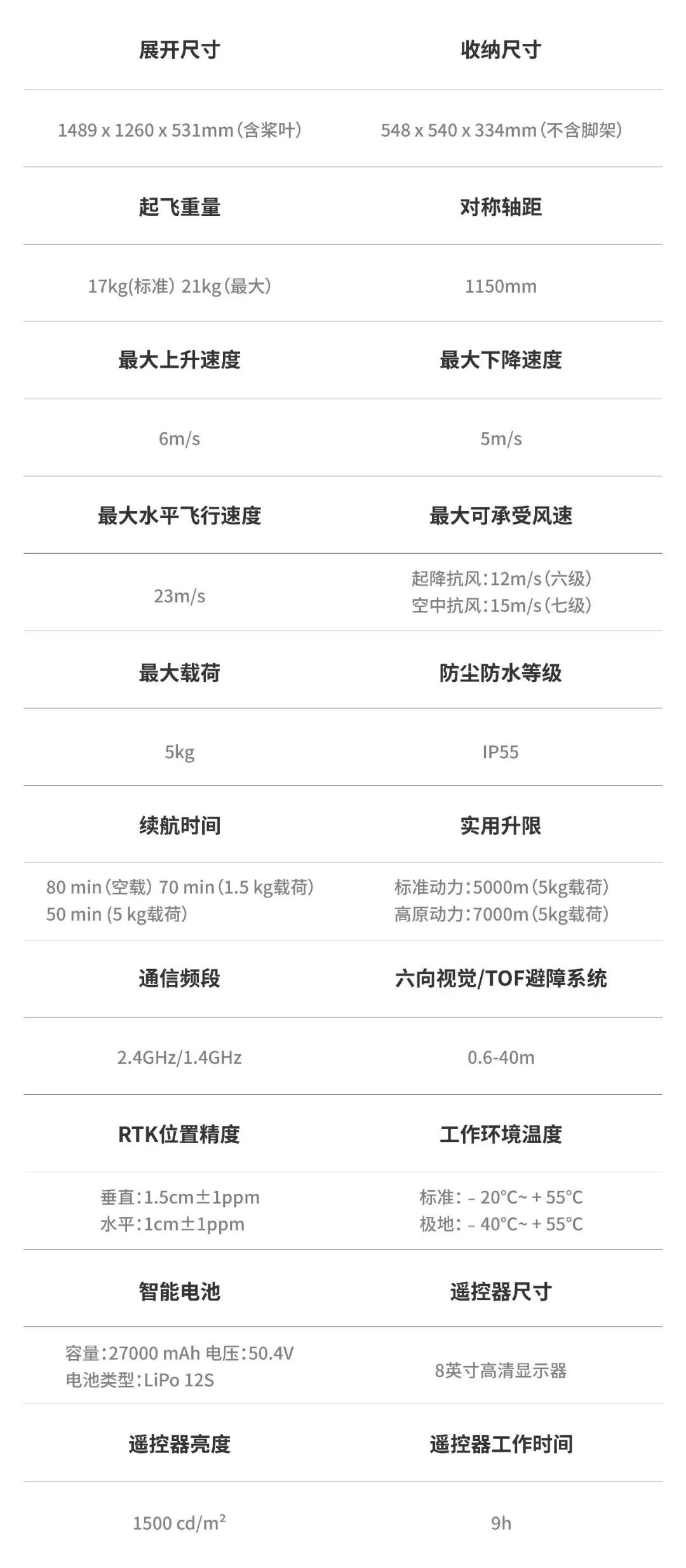TA-Q20可实现山区低空超视距作业,复杂环境的作业性能也有了大幅提升,IP55防护等级,空中抗风可达7级,最大飞行高度7000m,支持 -40° 极低温环境下工作,降低工作人员在高风险环境中的暴露。