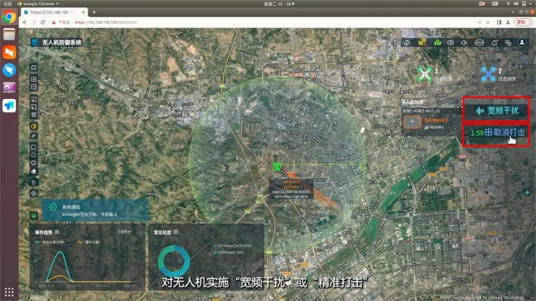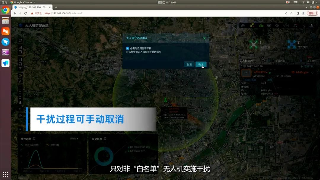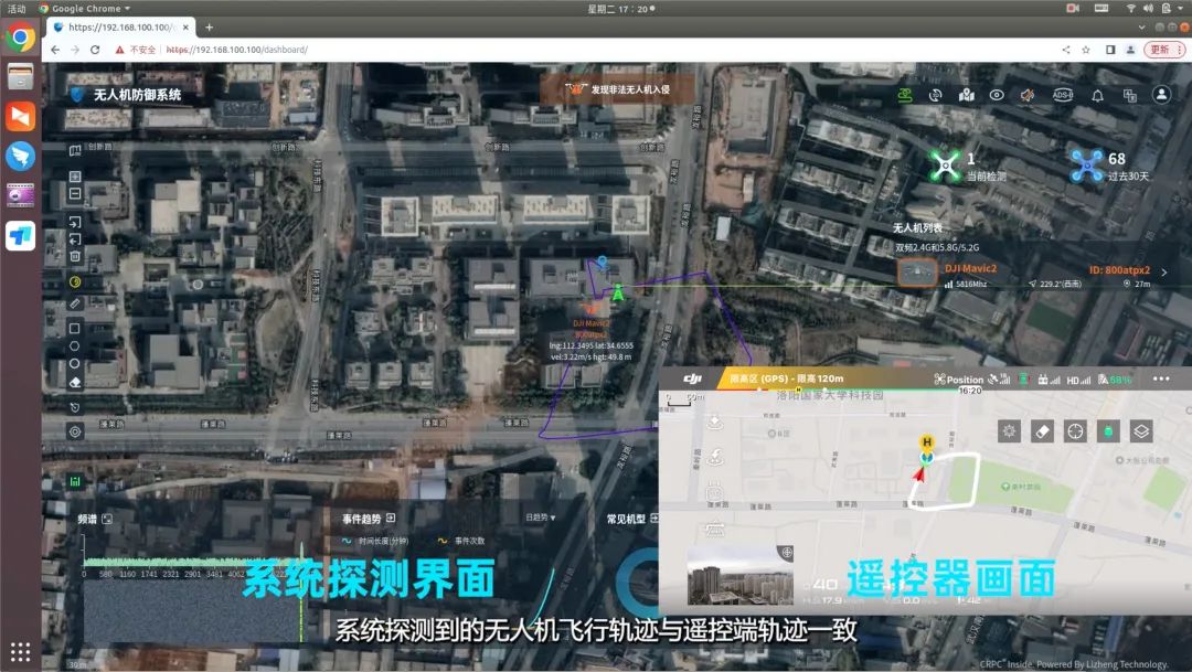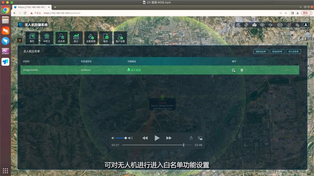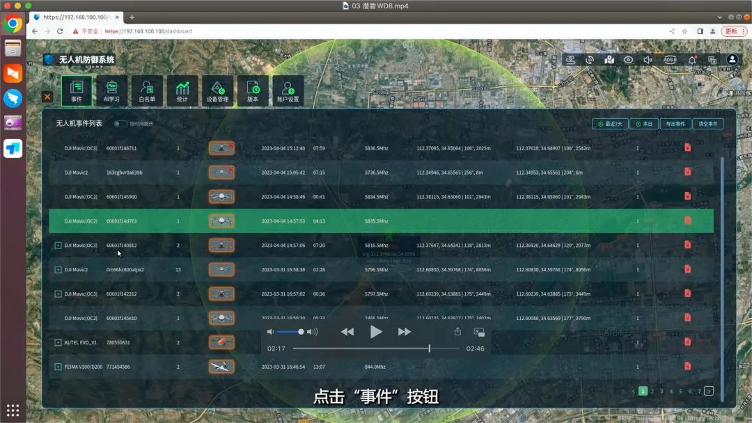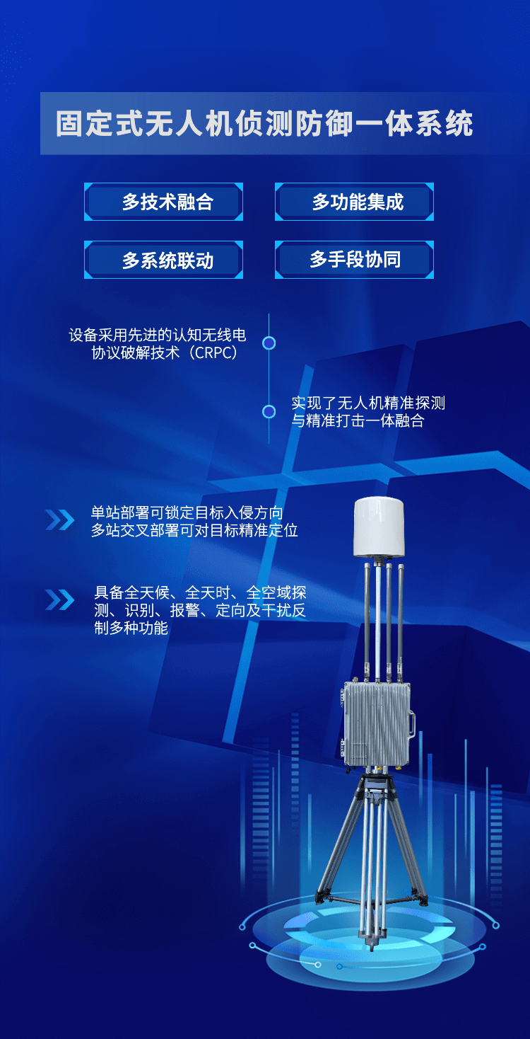 part 01 用户需要在开阔的高地或建筑物顶部进行设备安装 part 02 安装时,先将设备地面安装固定,再把无线电处理单元与架托连接,并固定在抱杆上 part 03 固定后,将天线按照对应接口逐一顺时针方向拧接在无线电处理单元上 part 04 随后,将测向天线底部插入立柱顶端,确保天线组件与立柱顶部紧固无松动 part 05 固定后,将天线按照对应接口逐一顺时针方向拧接在无线电处理单元上 part 06 最后,将测向天线通过1根信息控制线和2根馈线(2.4Ghz和5.8Ghz)和与设备主机对应相连 探测到无人机时,系统将自动报警,主界面显示探测到的无人机数量、机型、频点、方位、高度等信息,系统侦测的电子id号与无人机机身识别码一致 同时,系统可对无人机及飞手进行实时定位及轨迹跟踪,系统探测到的无人机飞行轨迹与遥控端轨迹一致 点击“事件”按钮,可查看发现时间、持续时间、机型、识别码、频点等信息 点击“白名单”按钮,可对无人机进行进入白名单功能设置 扫码关注我们 扫一扫 关注我 — 往期回顾 —