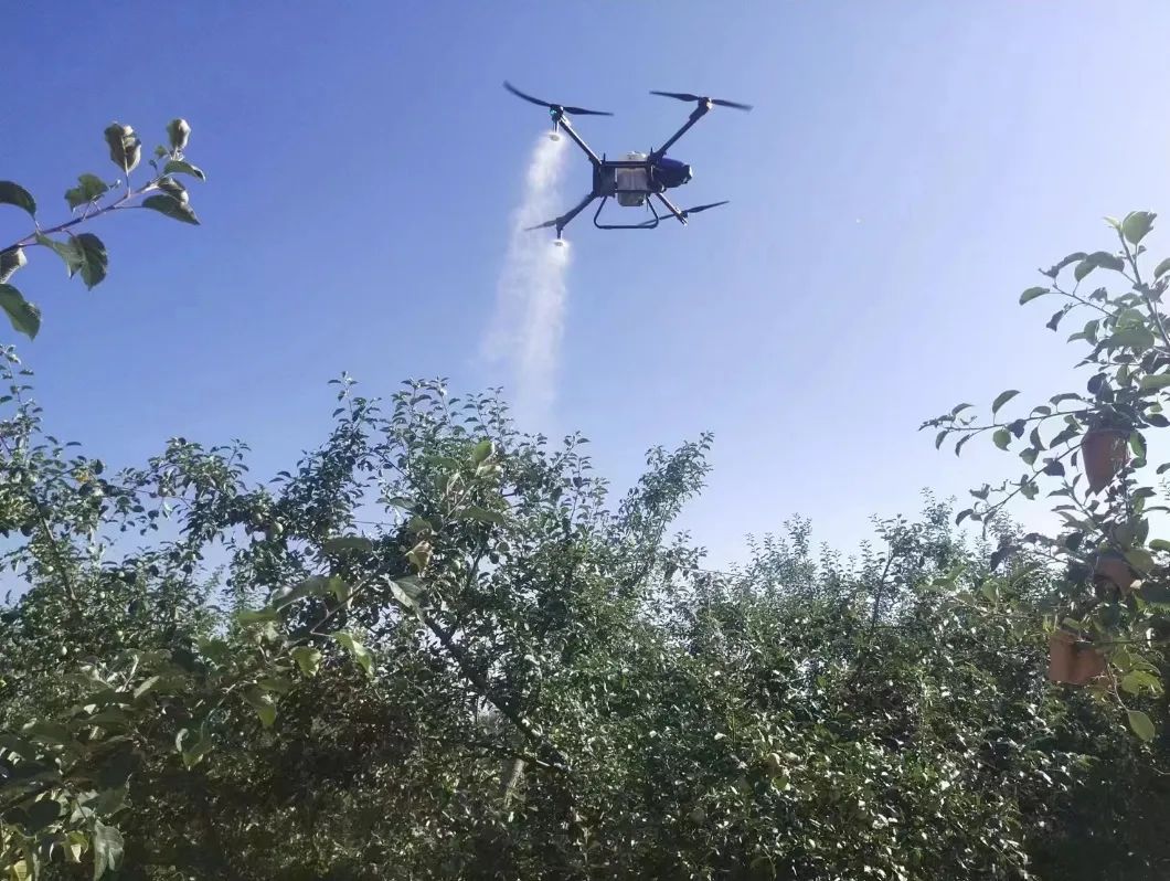 为了解决该困难,陕西省农业机械技术体系、延安市农机技术推广服务中心与宜川县农机技术推广服务中心组织无人机企业和全国病虫害防治专家,专注于省农机技术体系延安基地——宜川县百丰农机农民专业合作社,进行梯田山地果园的实地调研与论证。研究人员通过在不同季节调整无人机类型、飞行高度、飞行速度、喷头类型、亩用药量、植保喷洒助剂等大量试验性工作,攻克了延安山地果园无人机植保的行业难题,逐渐形成了一套成熟的标准化山地果园无人机植保作业技术规范。证明无人机也能打好果树,做好植保工作。