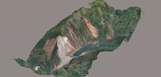 无人机测绘后创建的堰塞湖三维模型