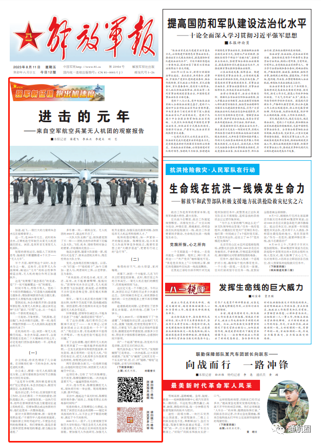 “无人机部队高速发展的时代来了!” 8月11日,《解放军报》头版刊发文章《进击的元年——来自空军航空兵某无人机团的观察报告》介绍我军首支某型无人机部队——空军航空兵某无人机团。下面让我们一起来学习下: