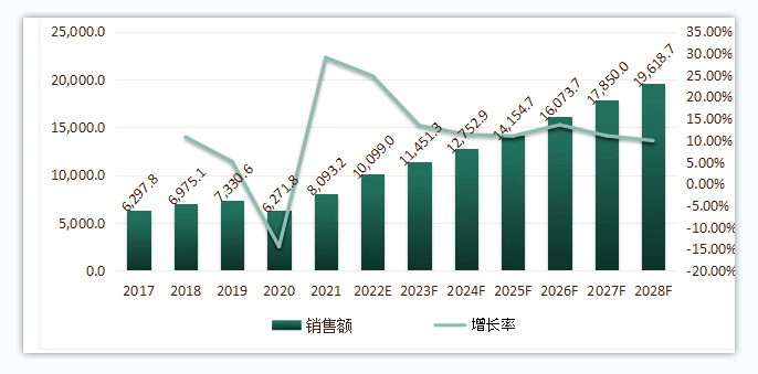 全球GPS定位系统市场销售额及增长率:(2017-2028)&(百万元)