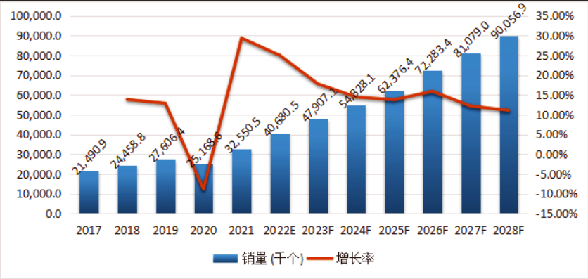 全球市场GPS定位系统销量及增长率(2017-2028)&(千个)