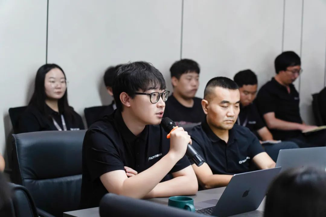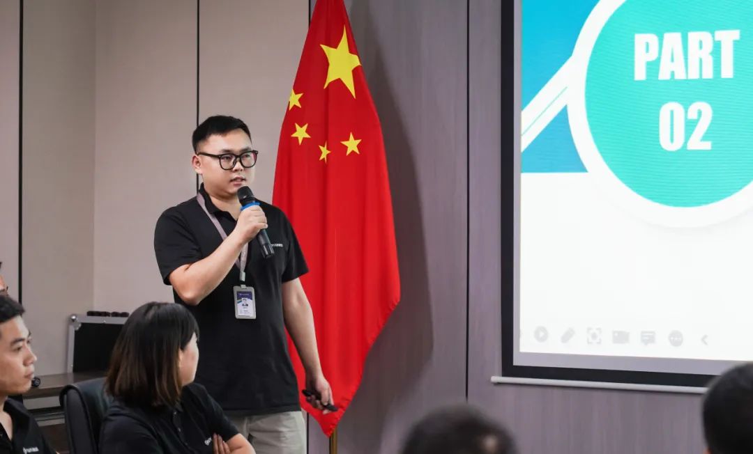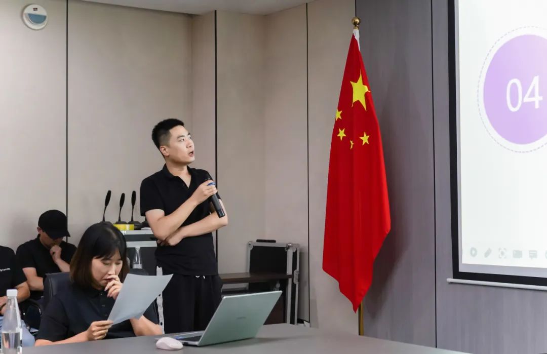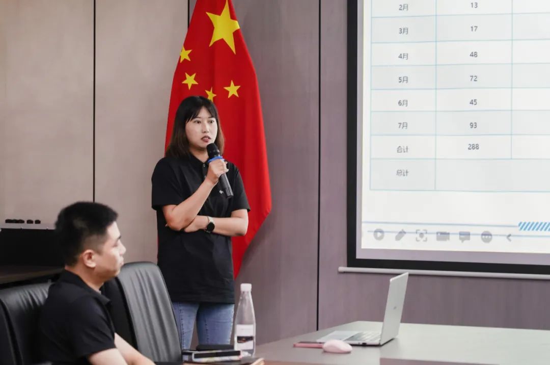 产品生产部负责人陈东东就部门岗位职责、上半年工作概述总结、下半年工作目标三维度进行汇报。