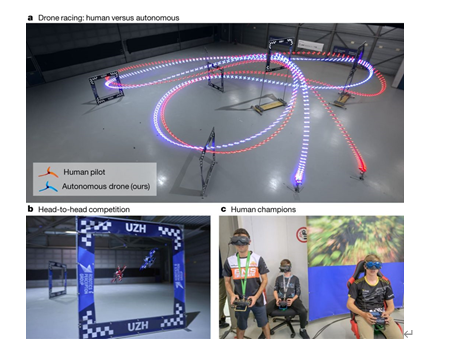 经过一个月的模拟飞行练习,相当于在台式电脑上进行了不到一个小时的飞行练习。人工智能与现实生活中的三位车手进行了较量:2019 年无人机赛车联盟冠军 Alex Vanover、2019 年 MultiGP 无人机赛车冠军 Thomas Bitmatt 和三届瑞士冠军 Marvin Schepper。