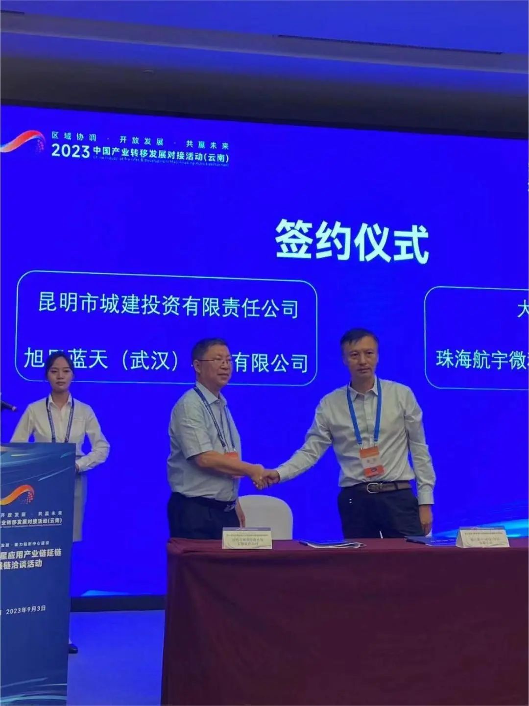 旭日蓝天总经理王军与昆明城投董事长杨晓斌合影