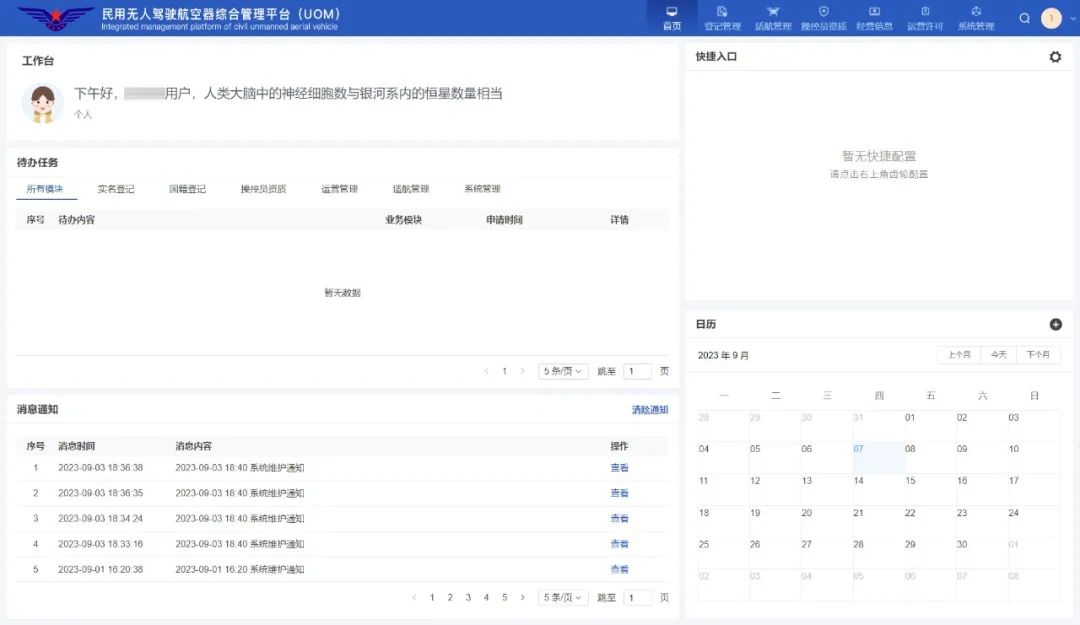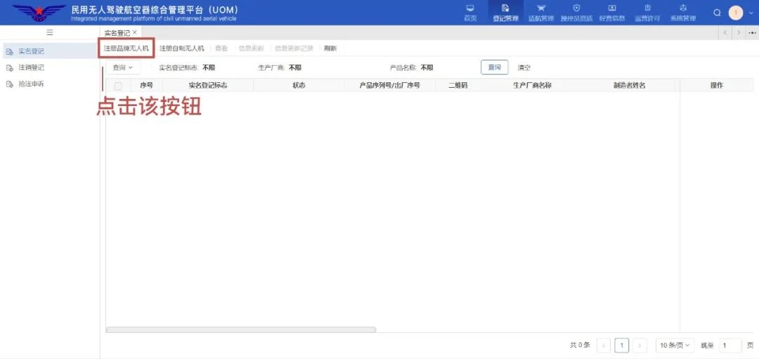 02如何进行实名注册登记操作流程及注意事项民用无人机所有者必须依法进行实名登记,未经实名登记实施飞行活动,违者将由公安机关责令改正或视情节处以相应罚款。实名注册登记详细操作流程如下:进入管理平台您可以通过电脑浏览器或手机App进入民用无人驾驶航空器综合管理平台(下文简称:UOM),为了获取更好的操作体验,建议使用浏览器进行注册登记,以下以电脑浏览器操作为例。▼打开浏览器,输入官方链接进入UOM(网址:https://uom.caac.gov.cn/)。