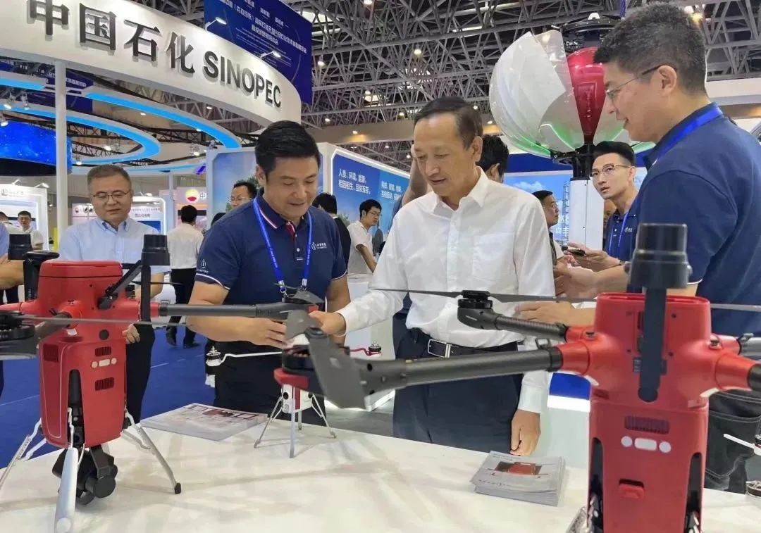 在云圣智能展台上,领导和嘉宾观看了解了“虎系”、“圣系”等多项产品在智慧油气建设的创新应用后,对云圣智能取得的成果给予赞扬。