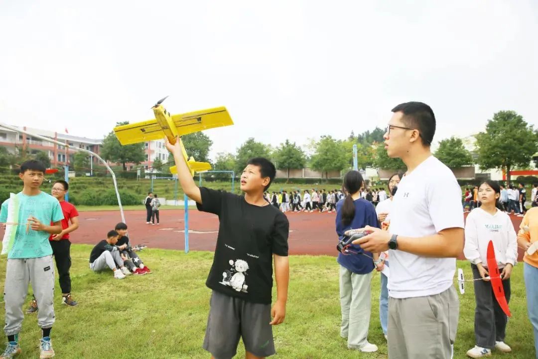 通过手掷、弹射、橡筋动力、无线电遥控、试飞……一步一步把理论变成实践,大家对学科知识有了更深的理解与思考,对飞向蓝天的向往与热爱也在心中滋长。
