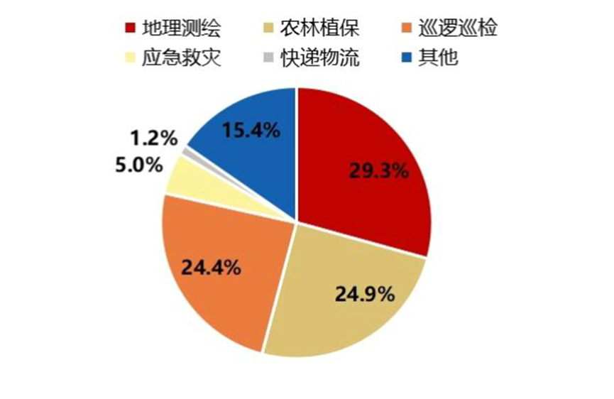 2020 年中国工业无人机应用领域中地理测绘占比29%