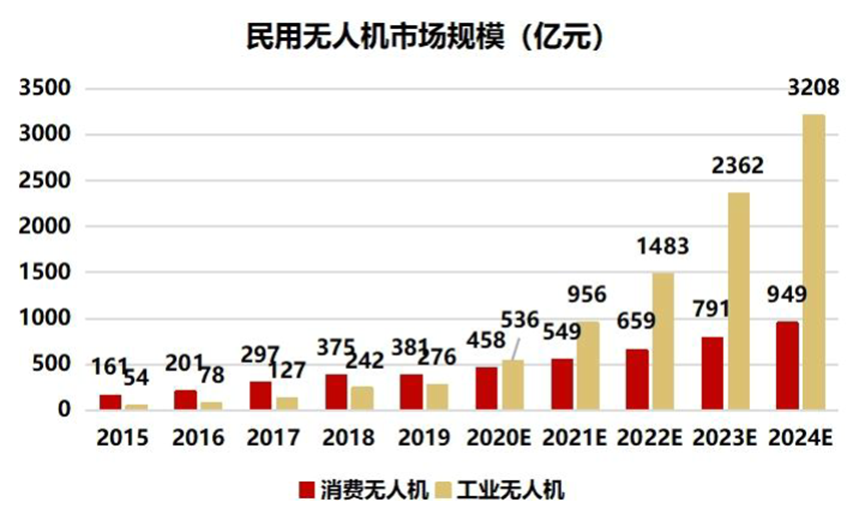 工业级无人机市场需求旺盛,2024年将达3208亿元