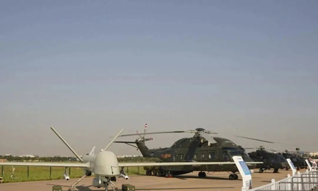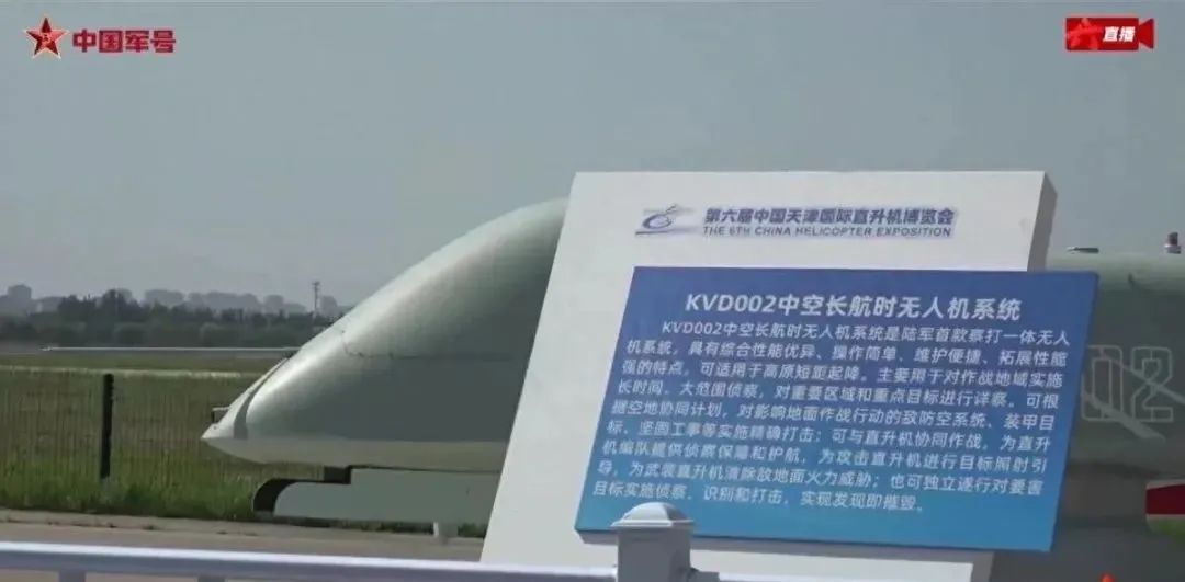 KVD002无人机和一众直升机排在一起展示,他们都是陆航装备体系下的主力机型