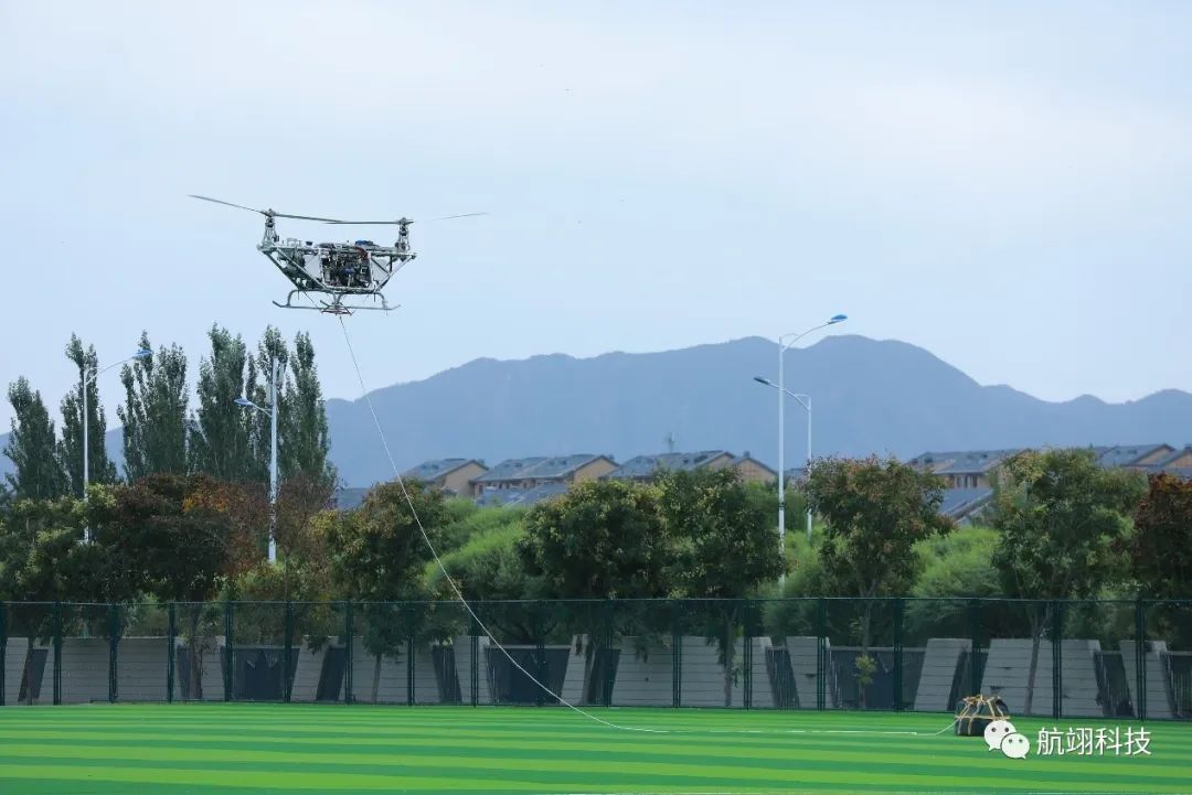 航翊科技研发的纵列式大载重无人直升机具备可靠性高、续航长、装载重量大、投送手段丰富、异构集群组网、卫星拒止环境下稳定飞行、环境适应性强等多项优势。首款产品在年初的阿布扎比防务展亮相后,受到国内外多方关注,该款大载重无人直升机最大起飞重量650公斤,净载荷200公斤,可在应急、电力、磁勘探、军工等领域执行灭火弹投送、通信保障、物资运输、伴随保障任务,目前已获得较大数量订单。