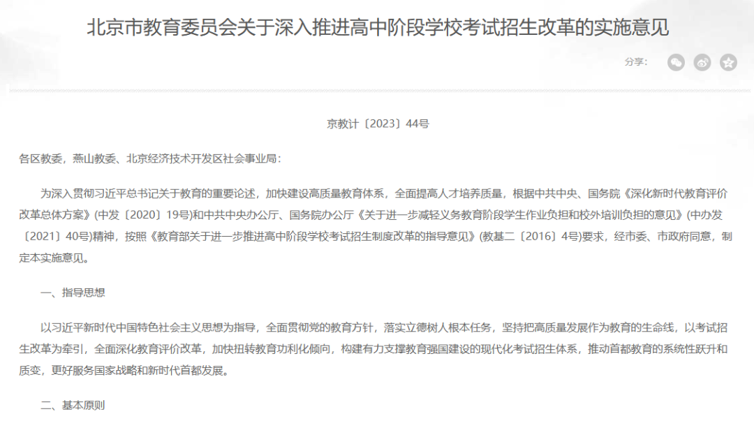 假期前两天又有一则政策,核心是“减负”。9月26日,北京发布了最新的中考改革政策,名为《关于深入推进高中阶段学校考试招生改革的实施意见》(简称《意见》)。核心内容是,将初中学业水平考试科目分为三类:考试、考查和考核,其中只有考试类的成绩会被计入中考总分,并与学生的升学挂钩。而考试类的只有6门,语文、数学、外语、物理、道德与法治、体育与健康。《意见》有望显著减轻学生学业压力;兴趣将带来更优良的高考升学效果;培养家长的长期意识;灵活创新更被推崇;多元思想办校,地区和学校自主权增加。
