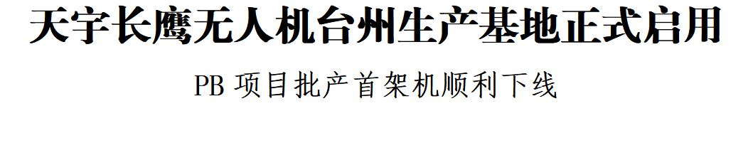 陈德芳表示,天宇长鹰无人机台州生产基地启用暨PB项目批产首架机顺利下线,是北方公司、台州市和北航深化央地合作、推进军民融合的重大成果,充分体现出三方合作之深、互补之强、成效之实。天宇长鹰是北方公司无人机系统重要的总体单位和产业平台,希望项目团队聚力推进原创性引领性技术攻关,构建自主可控的无人机核心技术体系,为全球客户提供独具特色的解决方案,提供好用、管用、实用、耐用的新型装备。同时,天宇长鹰也将充分发挥政企校联动与产学研融合优势,加快推进转型升级和高质量发展,为台州市空天一体化新兴产业做强做优做大作出新的更大贡献。