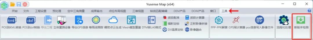 已安装Yusense Map_V2.2.3版本的用户可通过使用Map软件中“工具”菜单下的“新版本检测”工具下载更新。
