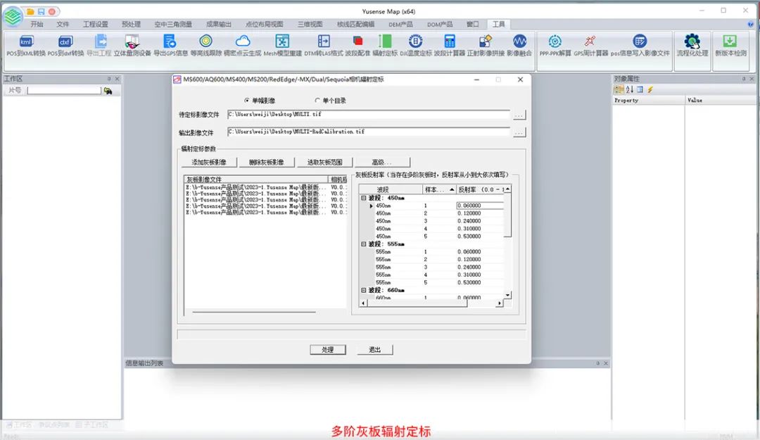 为满足科研用户使用多灰阶灰板进行反射率定标的需求,Map新增多阶灰板校正功能,可满足6个灰阶灰板校正,不同灰阶使用最小二乘拟合保证反射率准确性,提升目标反射率精度。