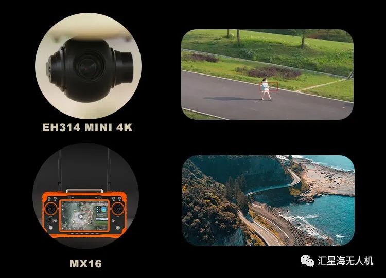 搭配EH314 MINI 4K追踪云台相机和MX16 10公里图数传地面站,可实现高清、稳定的远程图像捕获和实时传输。该套装提供了卓越的视觉清晰度,确保微小细节的捕捉,而追踪云台保证摄像稳定性,即使在恶劣复杂的环境中依旧保持图像的稳定和清晰。可靠的长距离实时数据传输,为决策提供实时支持。
