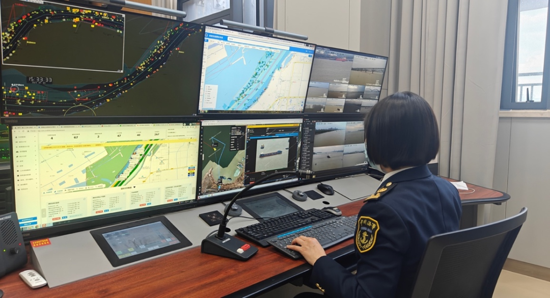 目前,南京海事基本实现无人化值守,长江南京段共部署了11个自动机库,可随时起飞巡航,只需要8名专业飞手就可以操纵专业的无人机,代替执法人员实施定时定点的规划航线飞行,并自主进行拍照、打点作业等。不仅如此,远程操控巡检也非常便捷,在南京海事局指挥中心,工作人员通过远程指令,20公里外的无人机立即响应起飞,指挥中心大屏实时显示巡航画面,从画面上看,无人机巡航覆盖范围更广、视野更直观、机动性更强。相比于海巡艇、执法车,运用无人机可以更快速有效地实施现场巡航执法。