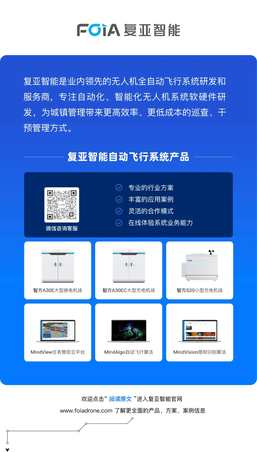 复亚智能是业内领先的无人机全自动飞行系统研发和服务商,专注自动化、智能化无人机系统软硬件研发,整合无人机与自动机场硬件、管理调度软件、飞行与图像算法,用高度智能的无人机系统满足政企用户低空巡查业务需求,通过分布式部署让巡逻干预随时可达,巡检数据触手可及。