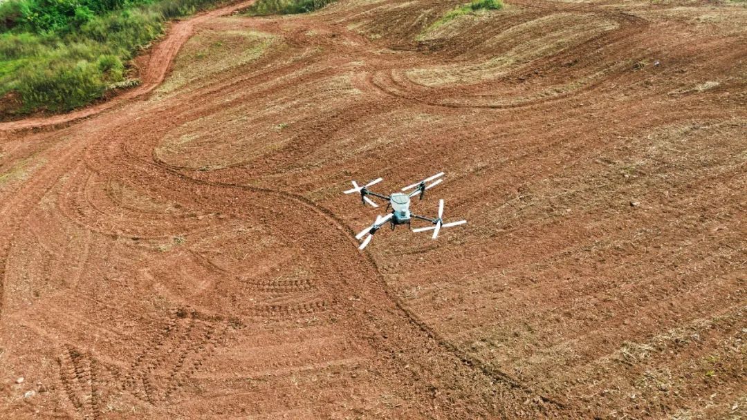 在无人机终端界面上,飞机飞行高度、速度、电量、距离、作业面积、航线等数据一目了然,还可以通过终端自动规划航线,保证无死角播种到位。开机、起飞、播撒……短短10多分钟,数亩油菜播种便已完成,让在场的村民们无不感到惊奇和赞叹。