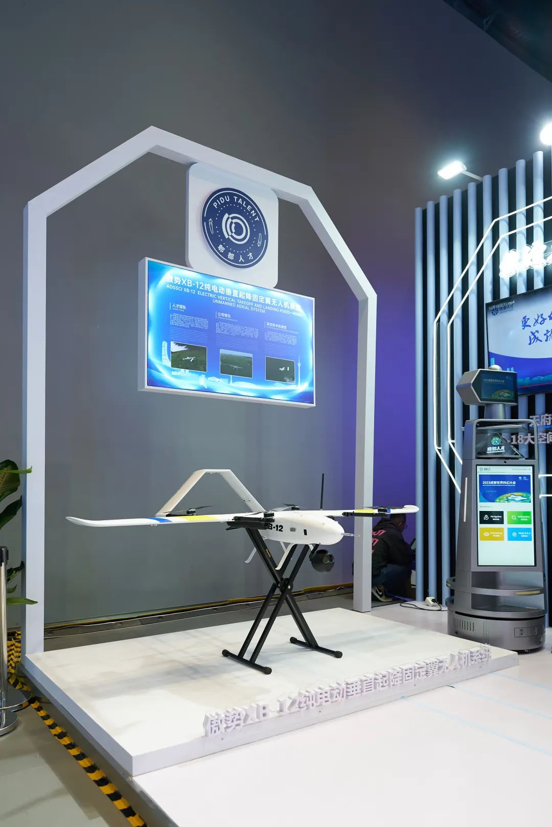 在科幻与产业展区,通体纤细又不失硬朗的傲势XB-12纯电动垂直起降固定翼无人机充满“未来感”,该款机型小巧轻便,实际上却“能力”满格。