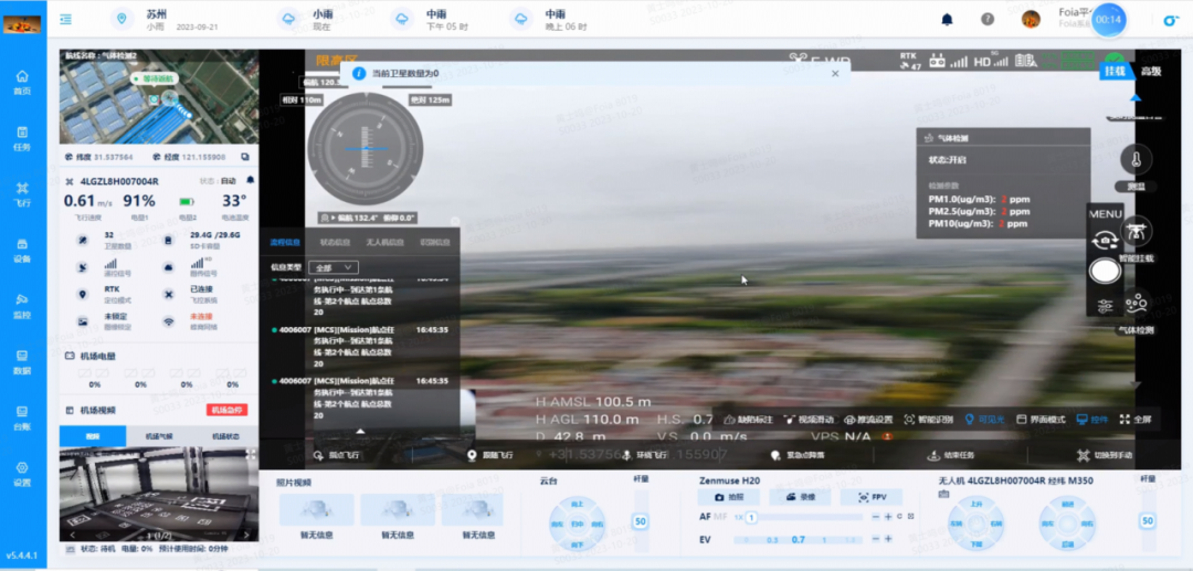 2. 实时飞行数据:飞行控制界面可实时查看气体检测数据并实时检测检测数据是否超过阈值。同时对于超过阈值情况会提供Toast提醒、语音播报提醒、指定账户短信提醒等,通过实时数据传输和分析,可以即时发现污染源,及时反应。