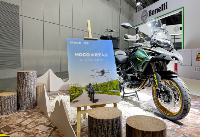 在进博会摩托展区,同为吉利集团钱江摩托旗下的贝纳利(意大利摩托品牌)展馆中,互酷车载无人机的展示位置格外引人注目。两者联合展出,这不仅彰显了吉利集团在摩托领域的全球视野,更凸显了摩托行业迈向智能化方向发展的新趋势。
