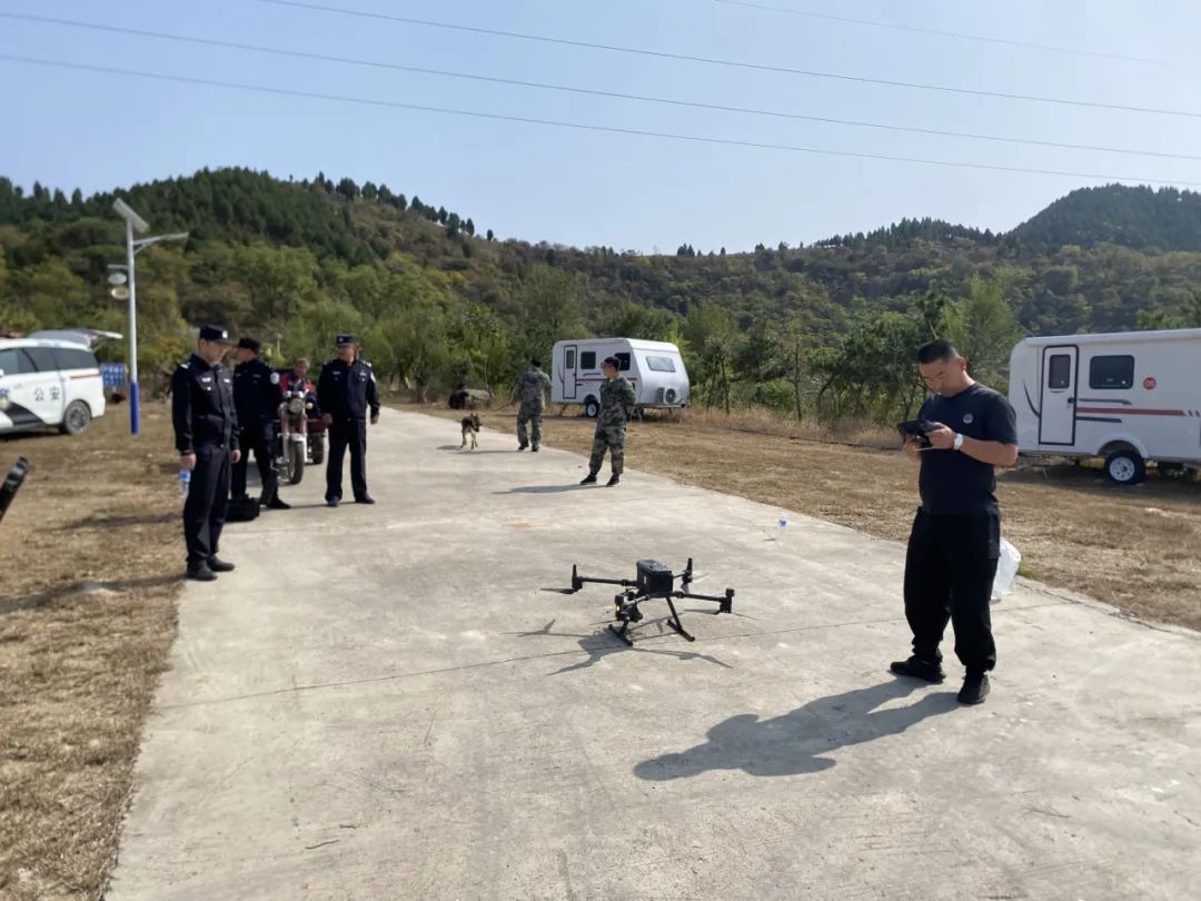 坦埠派出所立即联系特巡警大队与警犬训练中心,请求使用无人机、警犬支援。民警兵分三路,一路操作无人机借助空中优势逐座山进行寻找,一路携带警犬对气味进行追踪,一路沿用最传统的办法徒步寻找。