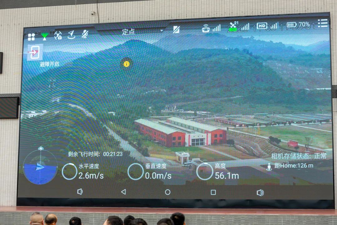装弹完毕,两架无人机起飞前往“起火点”。到达“起火点”上空,再次观察火情后决定从“起火点”中心位置投放灭火弹。